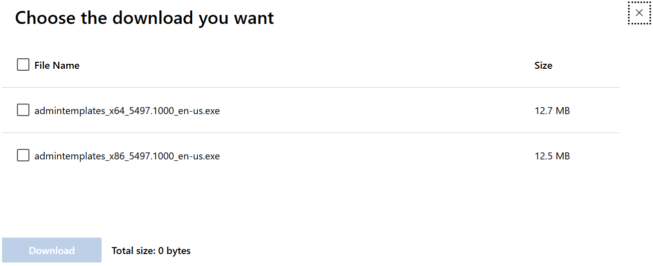 在官方文档给出的链接中下载和你电脑版本相对应的组策略模板